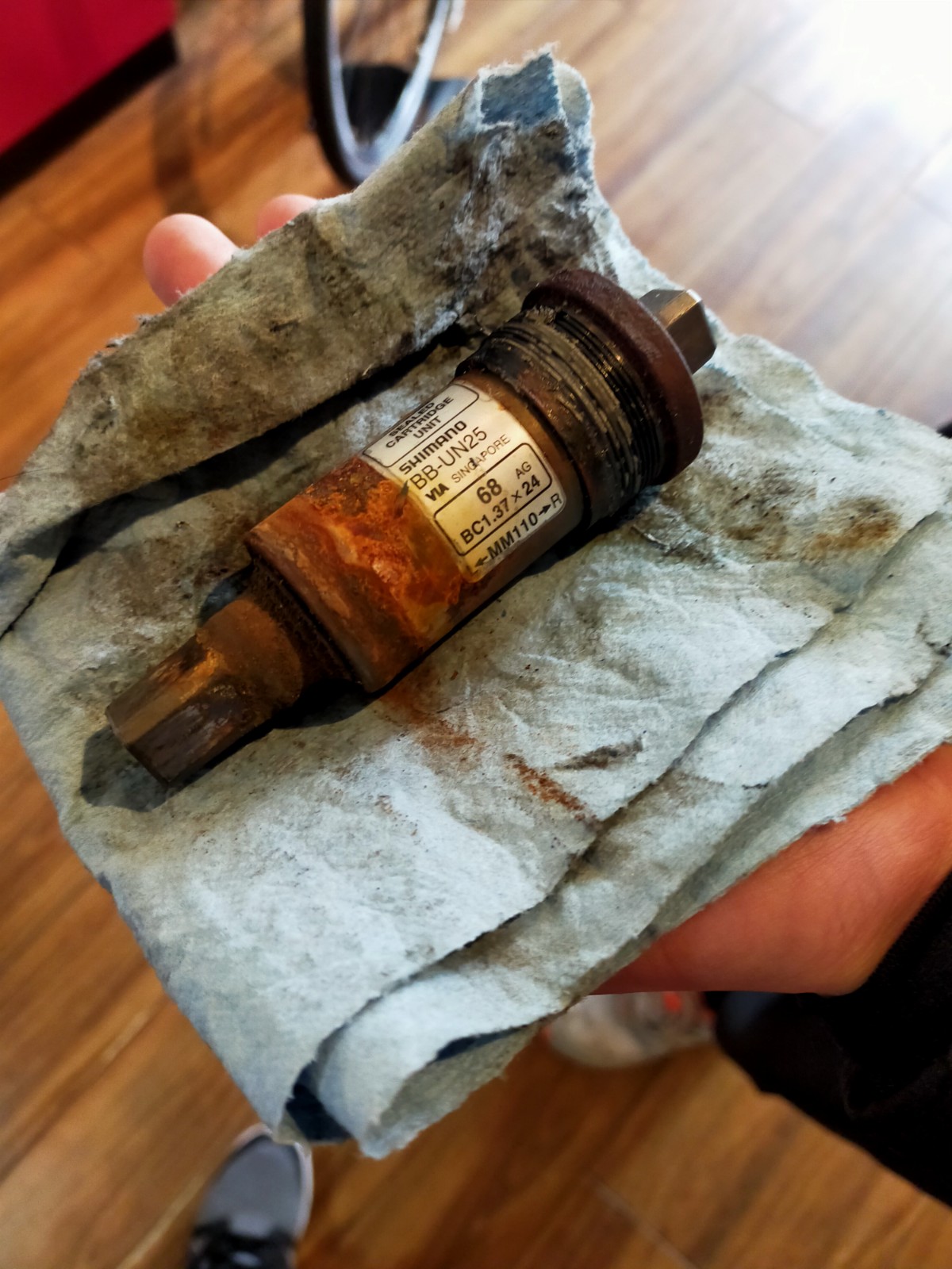 BB周辺部はかなり汚れが溜まっておりまして、BB外し工具を入れるのも難儀いたしました。