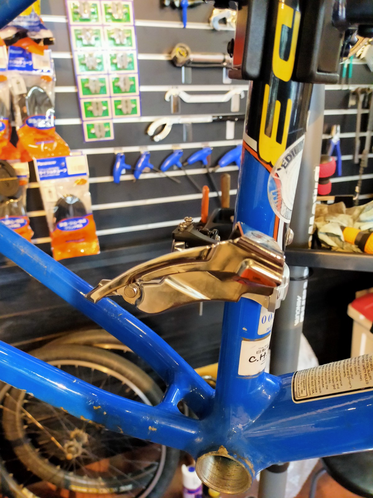 なんと、フロントディレイラーは、当時のデッドストックを新品でご用意くださいました。