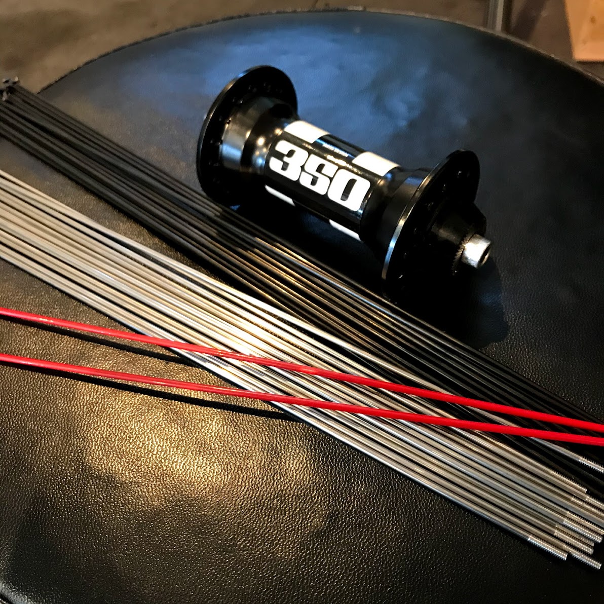 ハブがモノクロでカッコ良かったのでブラック一色でもいいかな〜と思ったのですが、遊び心でブラックとシルバーを半分ずつにしてみました。そしてDT Swissといえばレッドだろう!ということで差し色にレッドを二本チョイス。