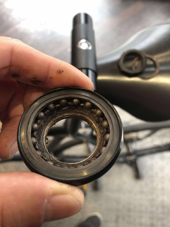 パーツを外していくのですが、ボトムブラケットが固着してしまって外せませんでした。