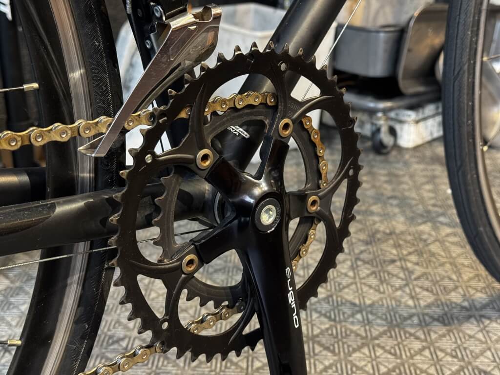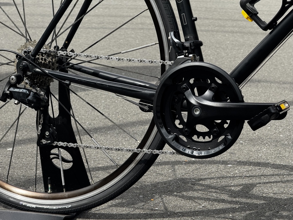 クランクとボトムブラケット、ペダル、チェーンを交換し、これまであったペダリング時のガタがなくなり、スムーズに漕げるようになりました。