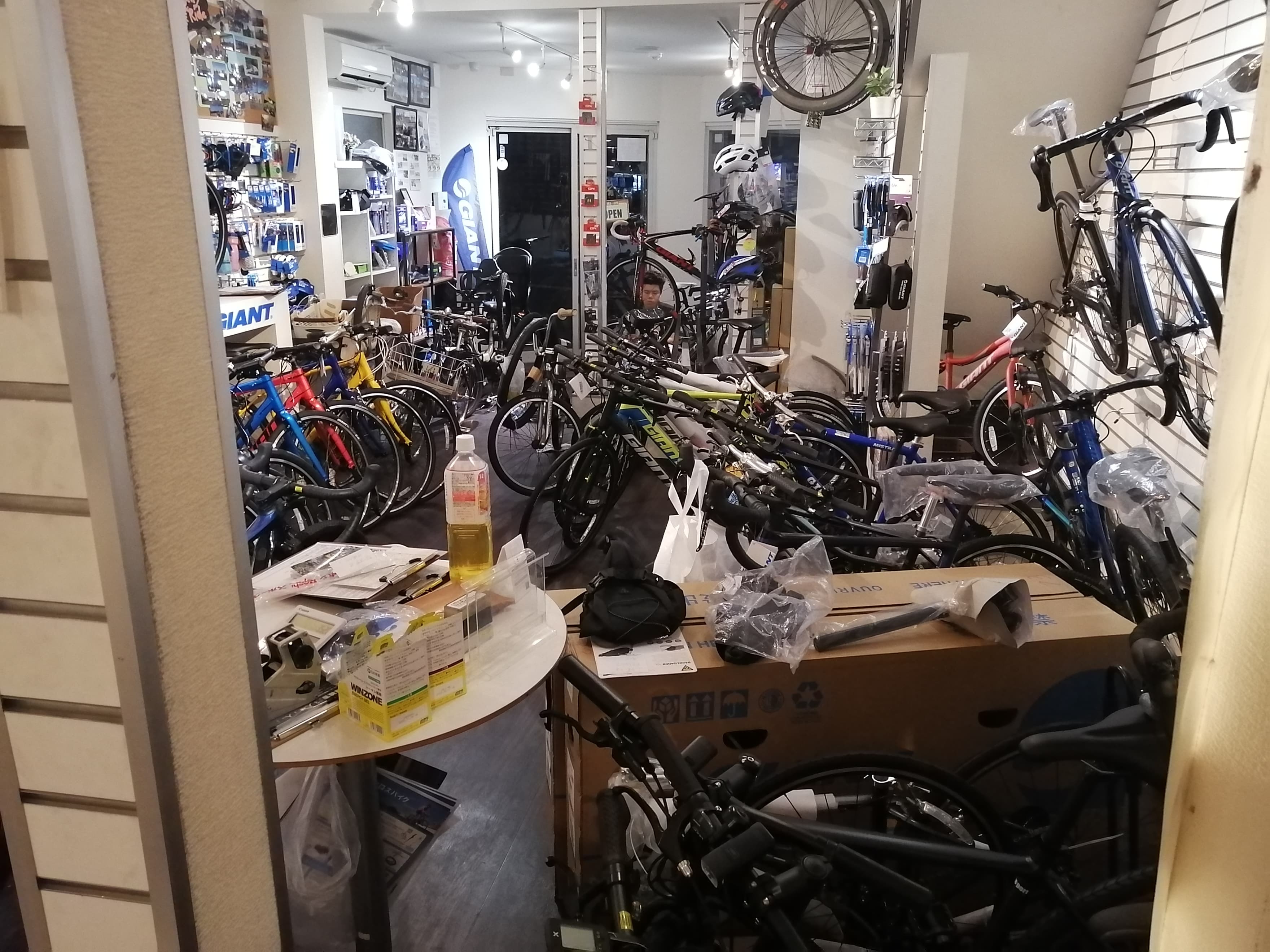 9月はbikeport両店ともにずっと混んでいたためこの有様…(11月現在、未だに作業片付かず…。笑)。ちなみに、当店1日のタイヤ交換作業は最大の数で20本以上交換しております。笑 (おそらく)