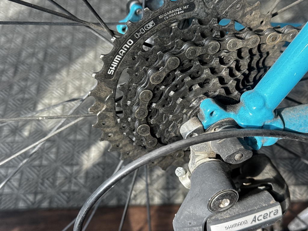 今回の作業内容としては、車体や駆動周りの洗浄、チェーン交換、ブレーキパッド交換、タイヤ・チューブ交換、変速とブレーキのワイヤー交換となります。