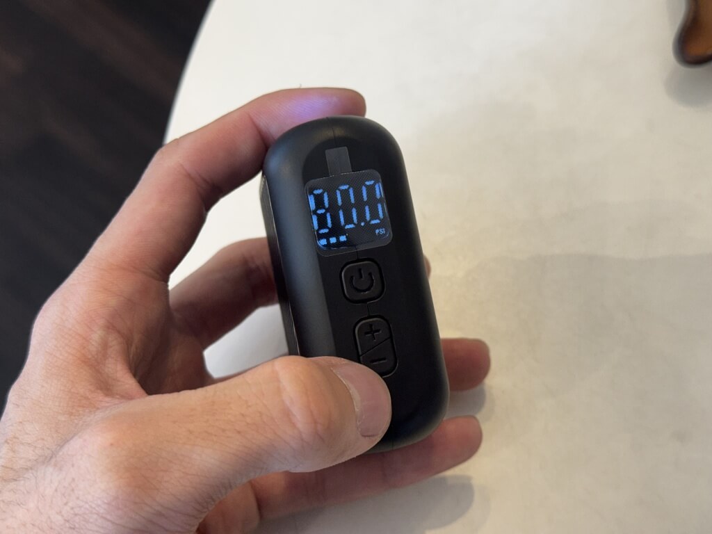 ディスプレイで空気圧を設定することで、その空気圧に自動で入れてくれるので、空気圧調整もできちゃいます。