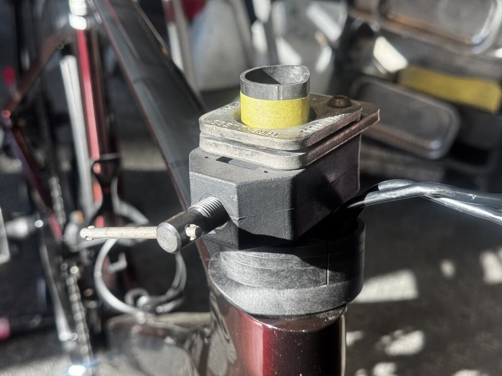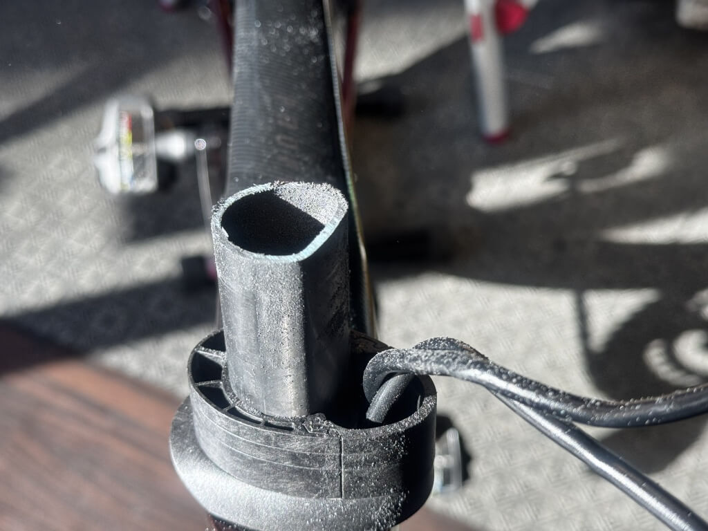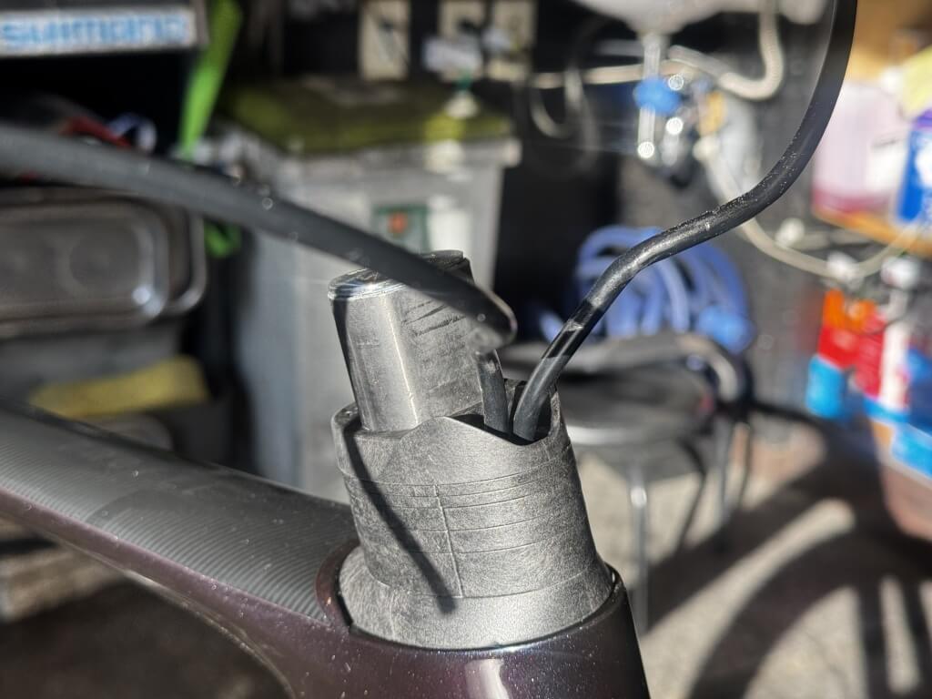 ステムの裏の部分はブレーキホースをガイドして、内装できるようにルーティングされています。
