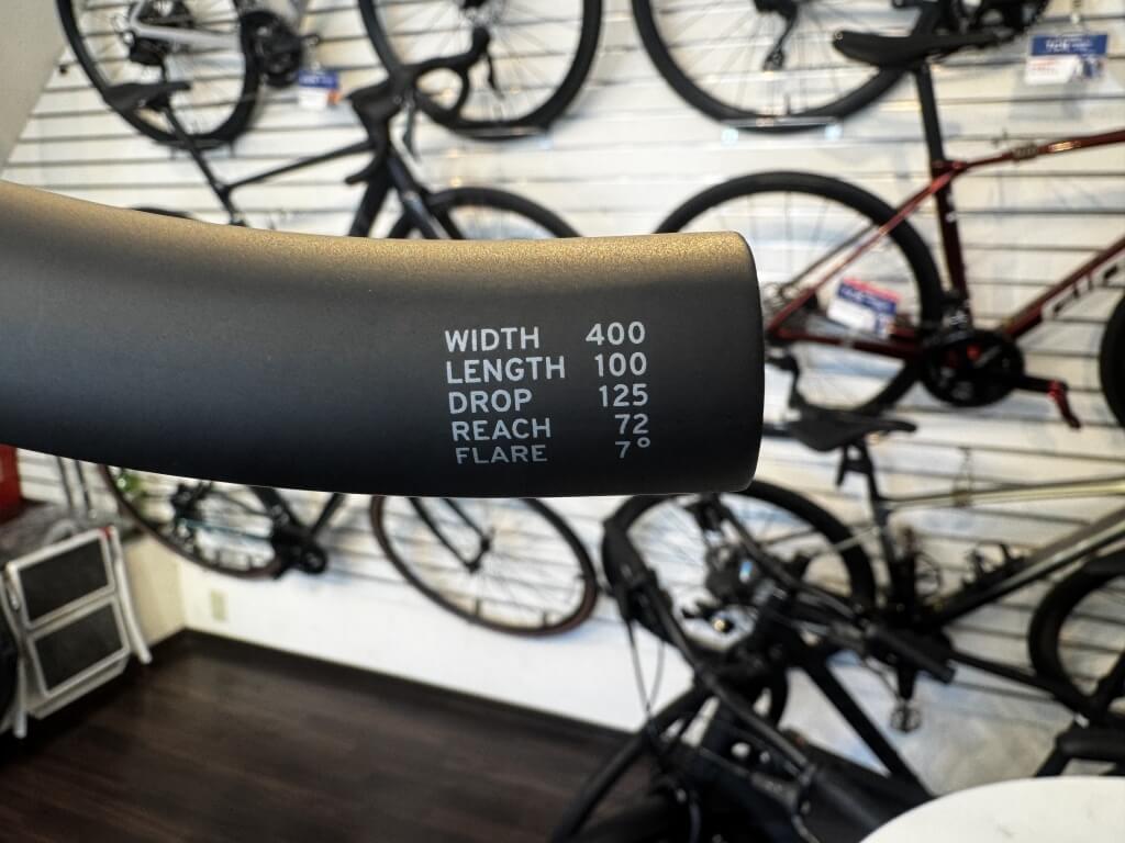 7.3°のフレアをしており、エアロポジションと下ハンを握った時の安定感の両立を図っています。