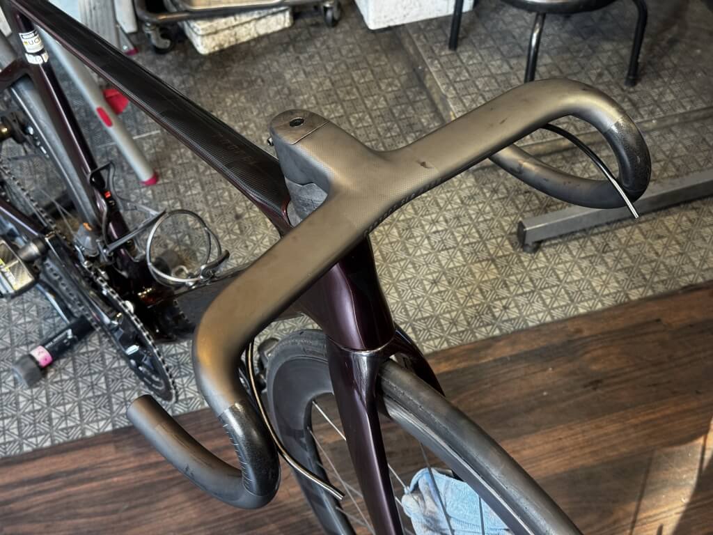 フレームだけでなく、コンポーネントとのトータルパッケージで大幅に軽量化されており、ハンドルバーはじめ多くのコンポーネントの性能の高さが垣間見えます。