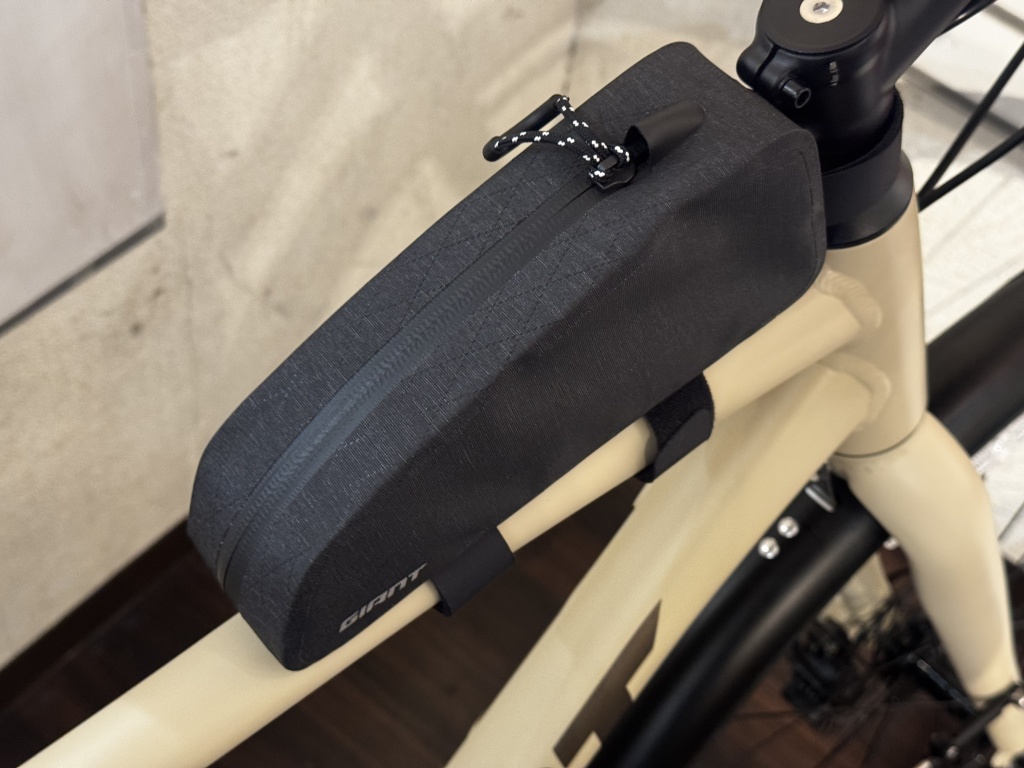GIANT独自の「H2Tex 3層防水生地」を採用し、防水トラックジッパーが付いているので、防水性が高く、モバイルバッテリーなども収納することができるトップチューブバッグです。