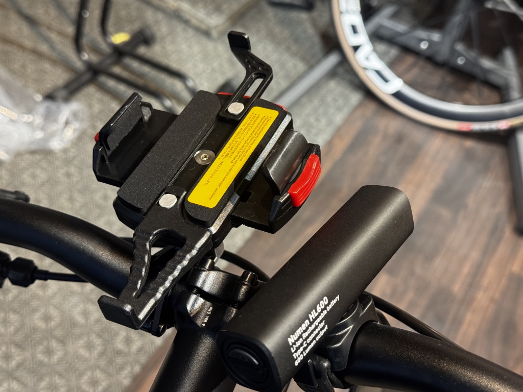 スマートフォンホルダーも付けて、宅配サービス用に走りやすい仕様にしました。