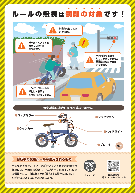 通販などは型式認定の無い車体も流通している場合があります。罰則の対象になりますので、E-BIKEをお探しの方はぜひ店頭でお求めください。