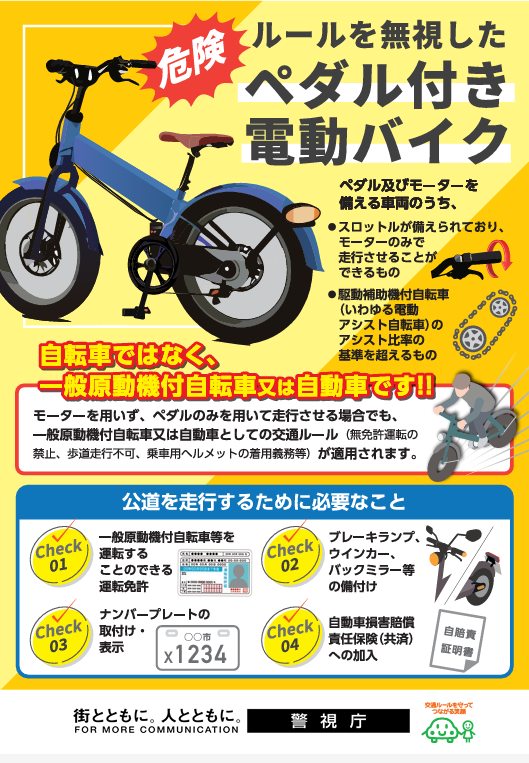 最近はペダル付きの電動バイクが街中を走っていることも珍しくなくなっています。