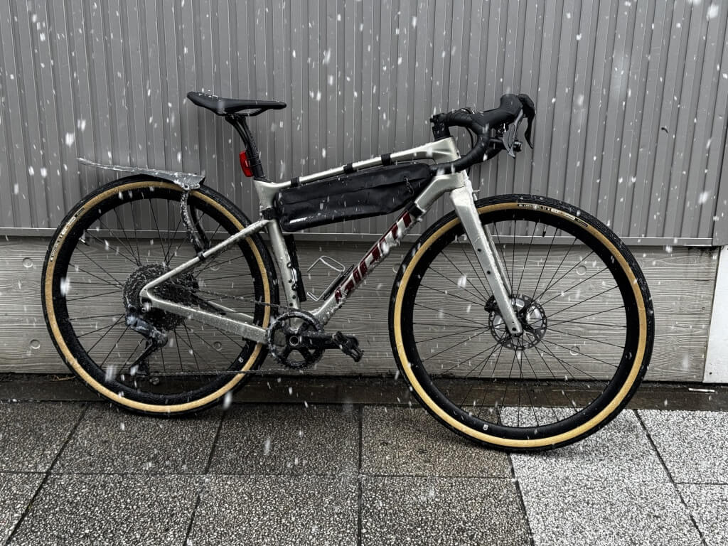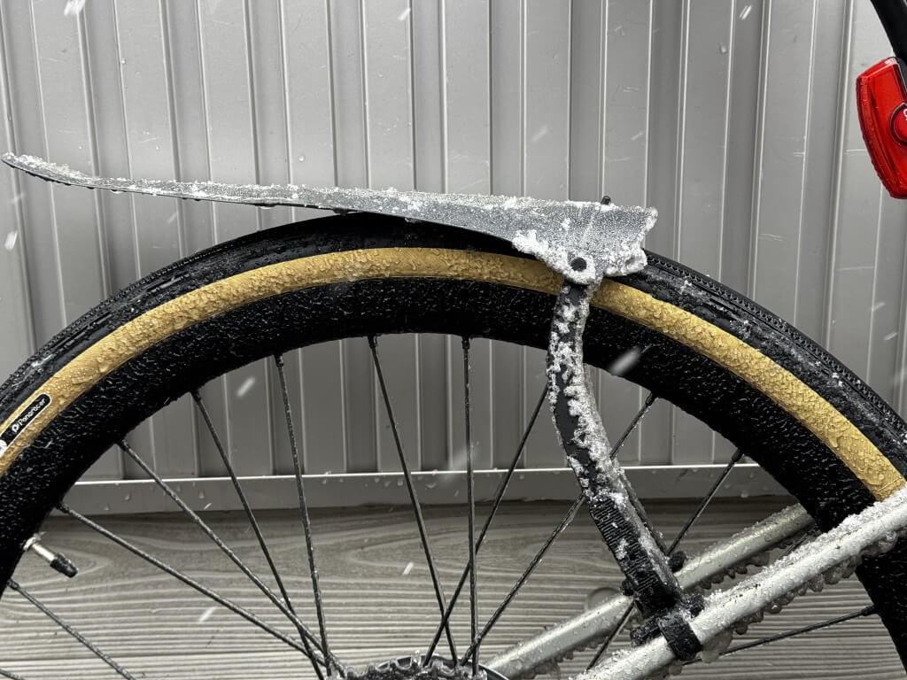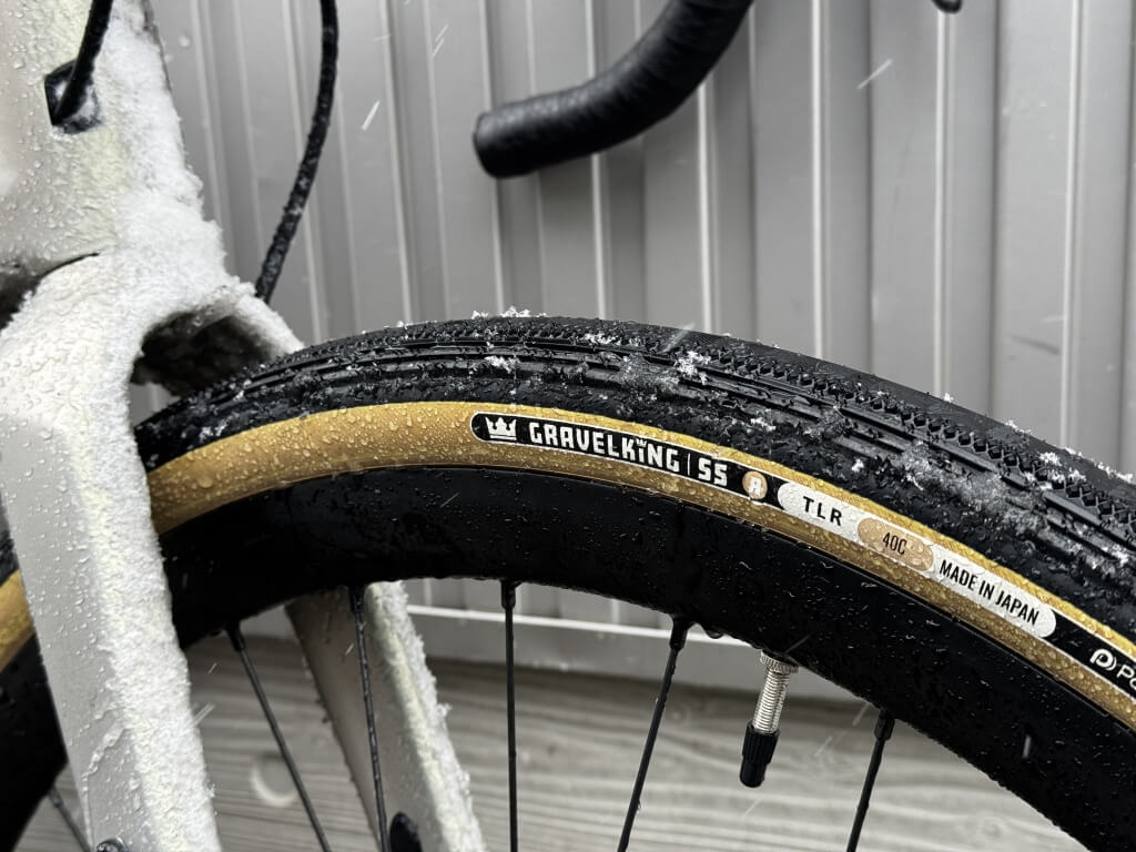 40Cのグラベルキングは、凍結路面は少し怖かったみたいですが、雪道は余裕だったとのこと。