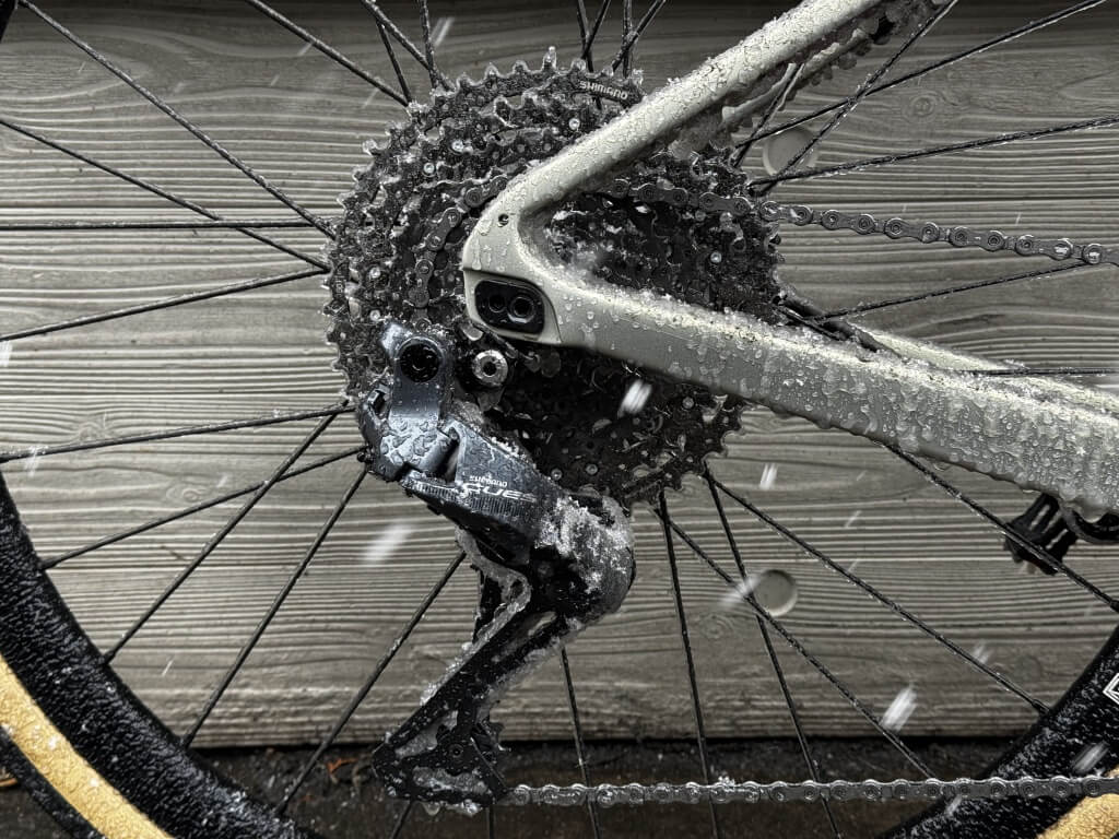 電動オートシフト、シマノQ’AUTOを組み込んでいますが、Di2と同じように雨、雪関係なくしっかり駆動します。