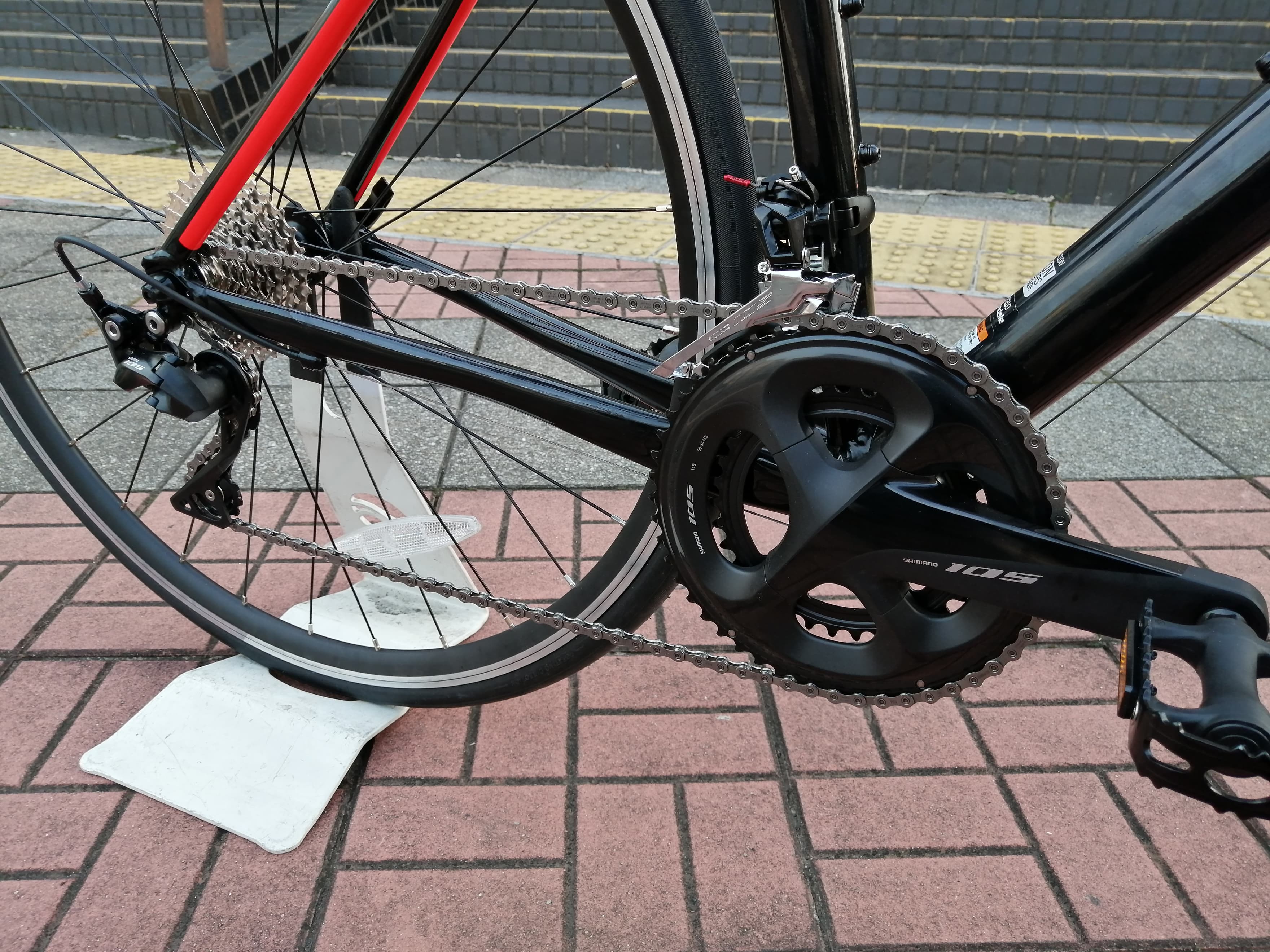 コンポーネントは、標準装備のSHIMANO 105 (R7000系)で統一!! 高級クロスバイクです…。笑