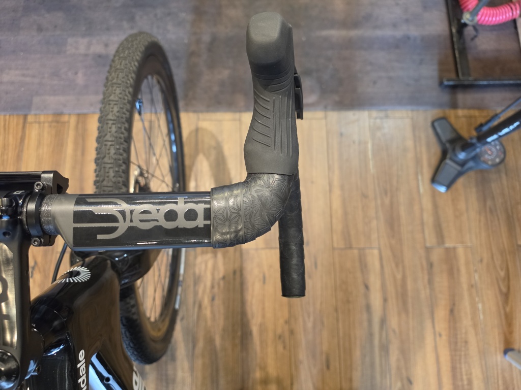 グラベルレース等用に再設計されたSUPERZEROハンドルで16°フレアしています。
