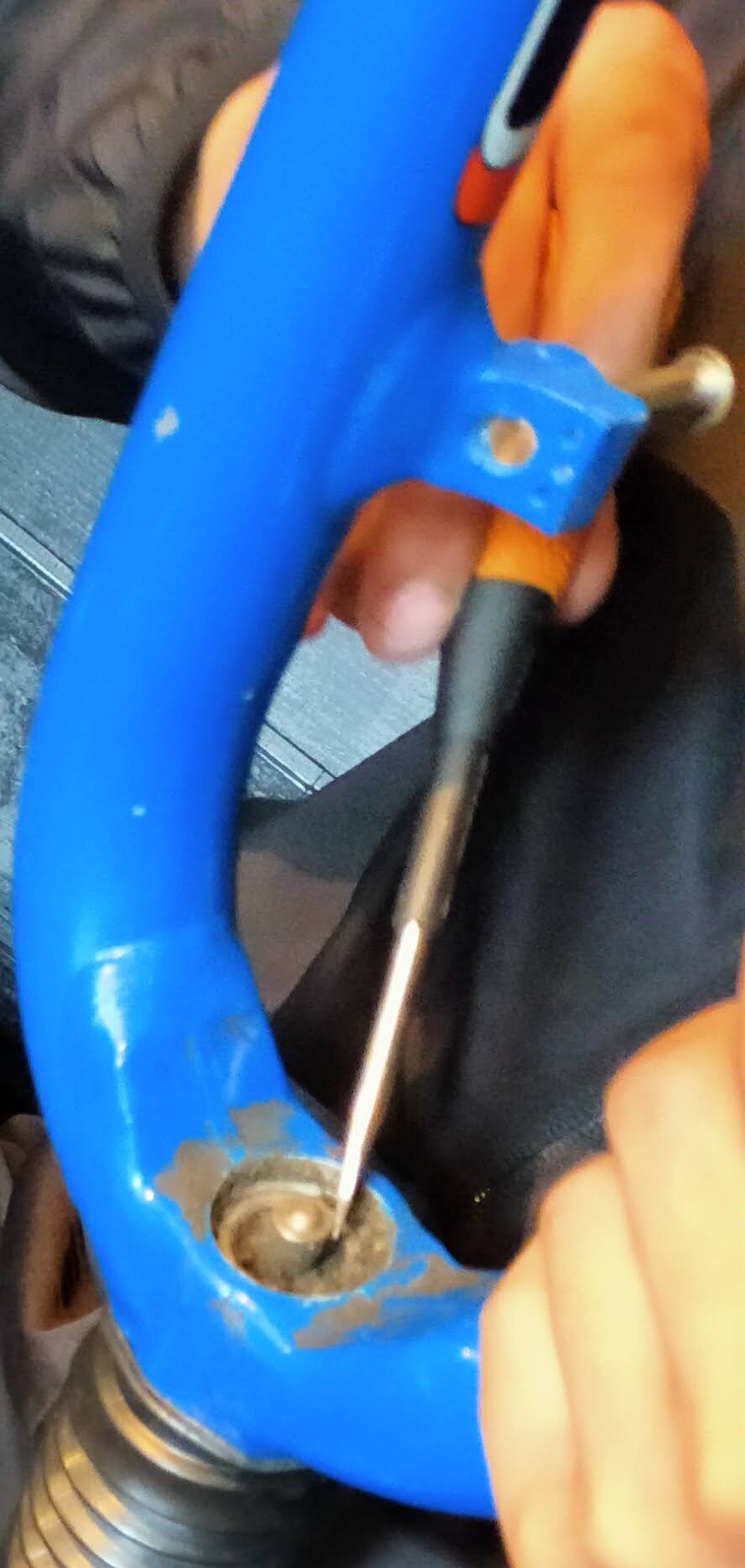 今回のヘッドショックは特にエアが0の状態であったため、適正空気圧まで注入します。