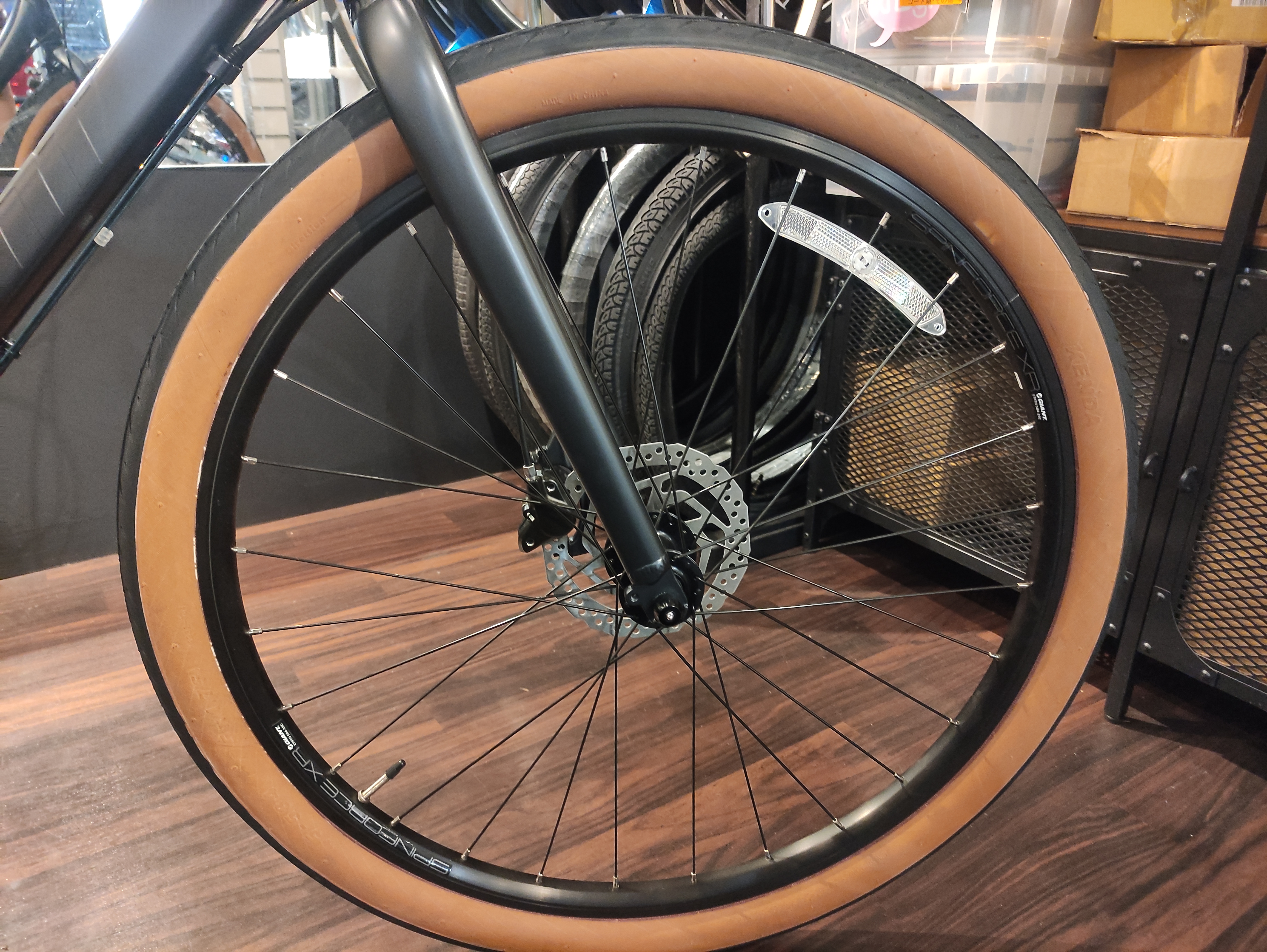 流行りの太めのタイヤを標準装備! GIANTが販売しているESCAPE R3が30mm一般的な自転車が37mm(26×1 3/8) ほどなのでGRAVIER DISCのタイヤ幅がいかに太いかわかると思います!