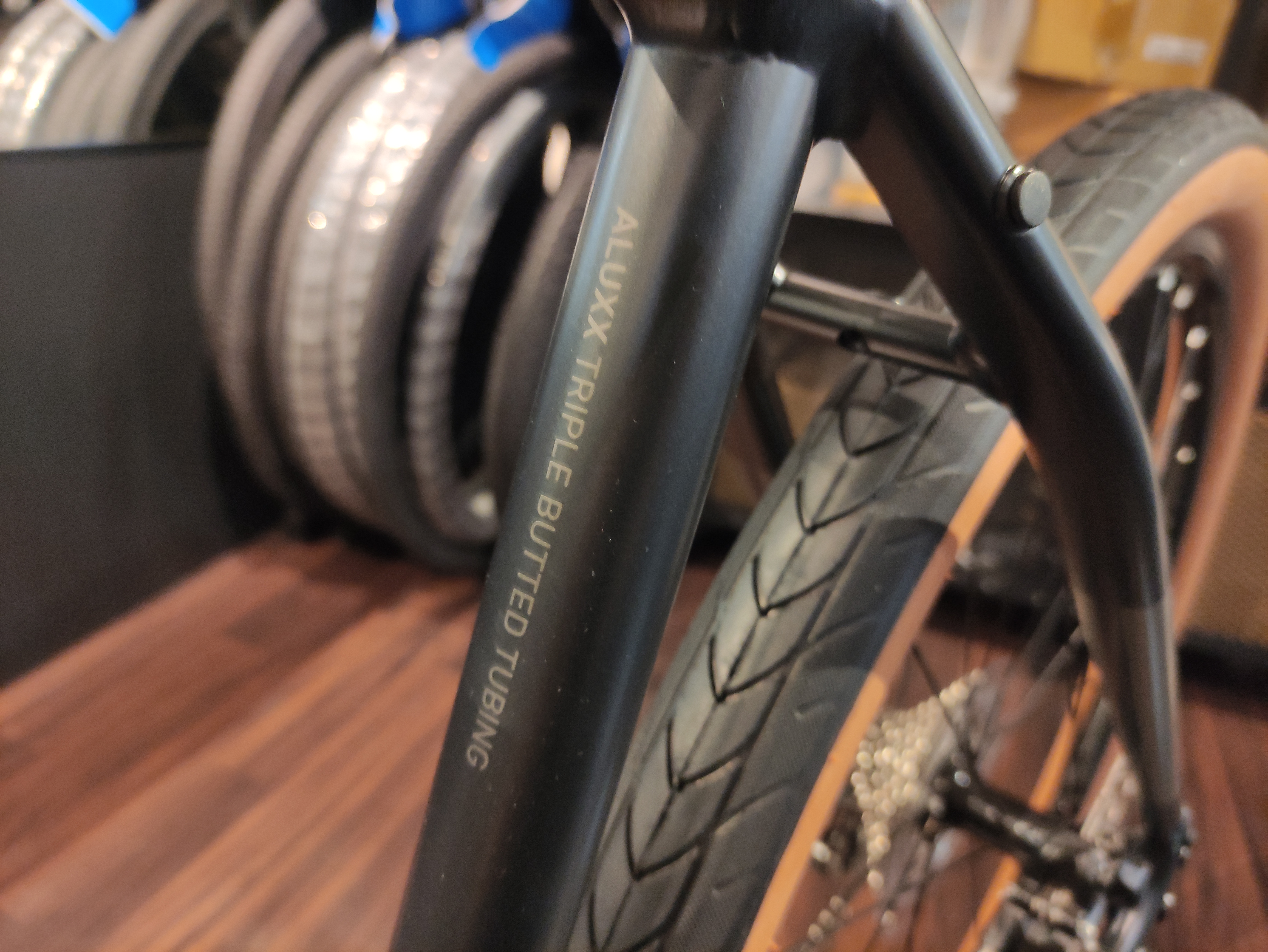 フレームにはALUXX-Grade Aluminumが使われていて、見た目こそ太くごついですが、車体重量は意外にも11.6㎏と軽くなっております!重量剛性比が高く、走行性能に関しては見た目からは想像出来ない位、軽快な走りが可能です!