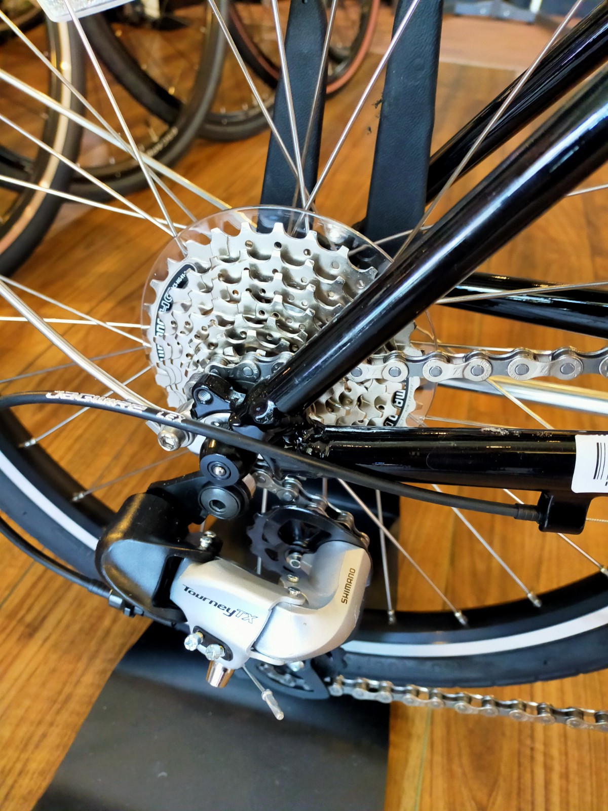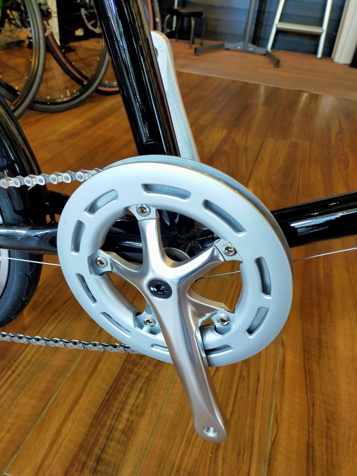 多くのクロスバイクと異なり、フロントディレイラーがありません。