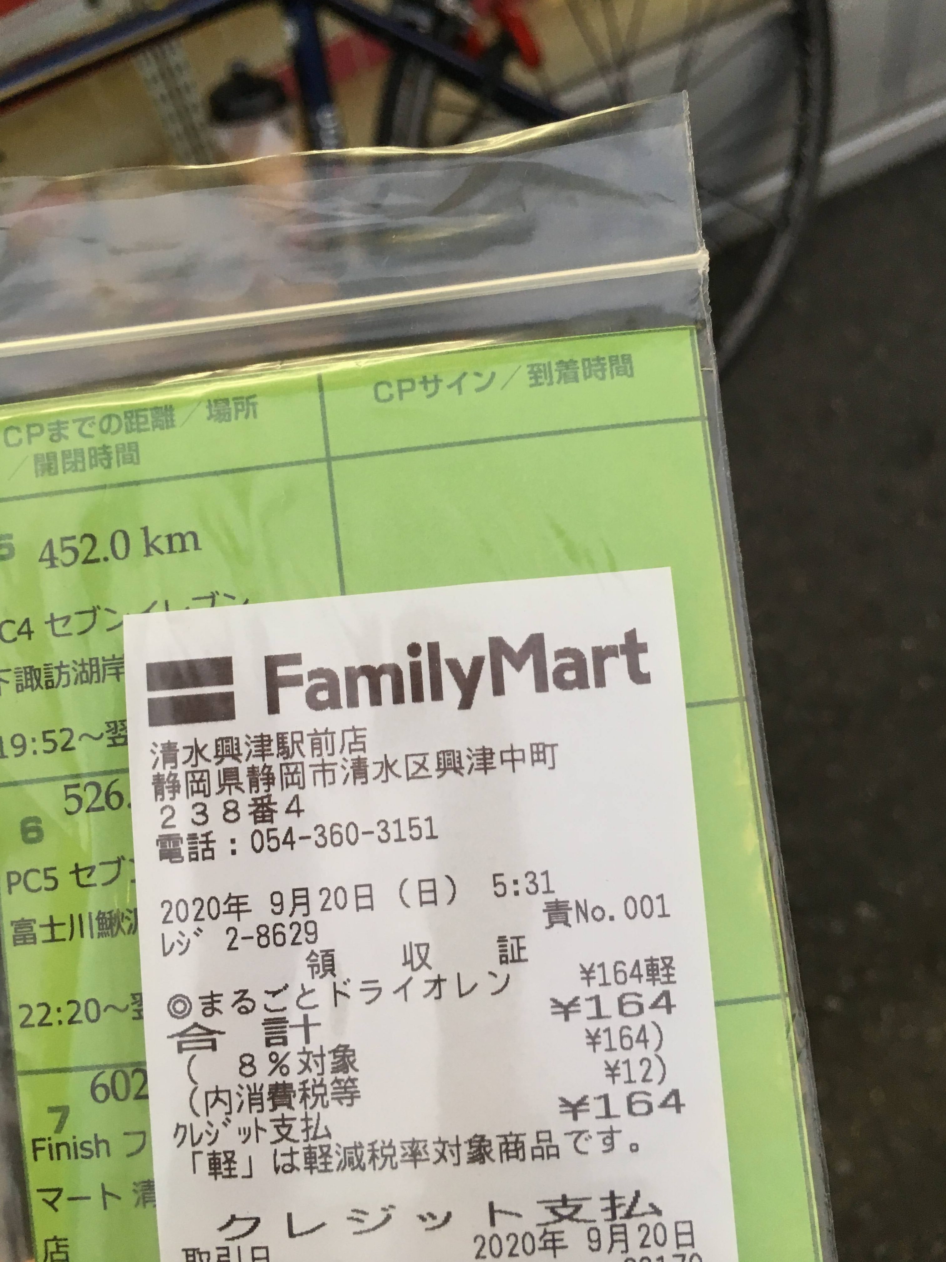 代わりにスタート時刻にいたことの証明として、指定のコンビニエンスストアのレシートを頂き、後日郵送することとなりました。