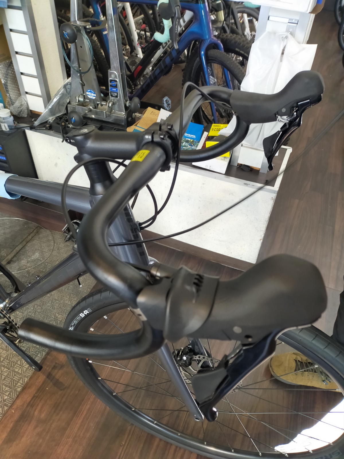 なお、CONTEND AR1 ¥200,000(税抜)という車種がありまして、こちらはまさに油圧105なのですが、お客様としてはフレームのカラーリングがしっくりこない、とのことで、AR1とフレームが共通しているAR4を油圧105化する、という着想に至ったのでした。