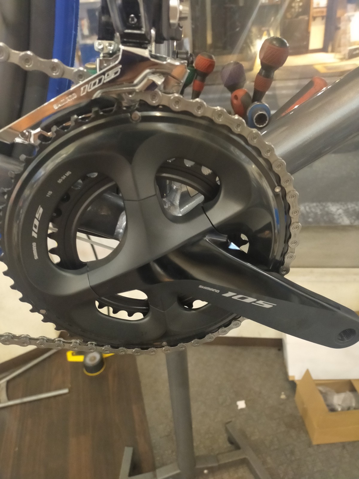 完全105化した場合は、AR1よりもグレードの高いクランクセットを装着することになります。