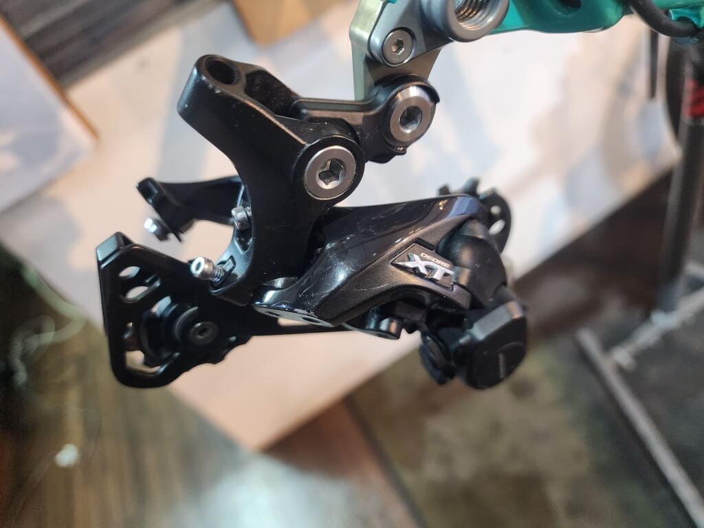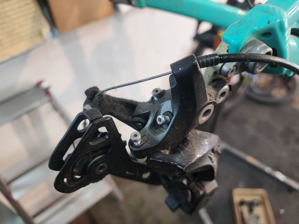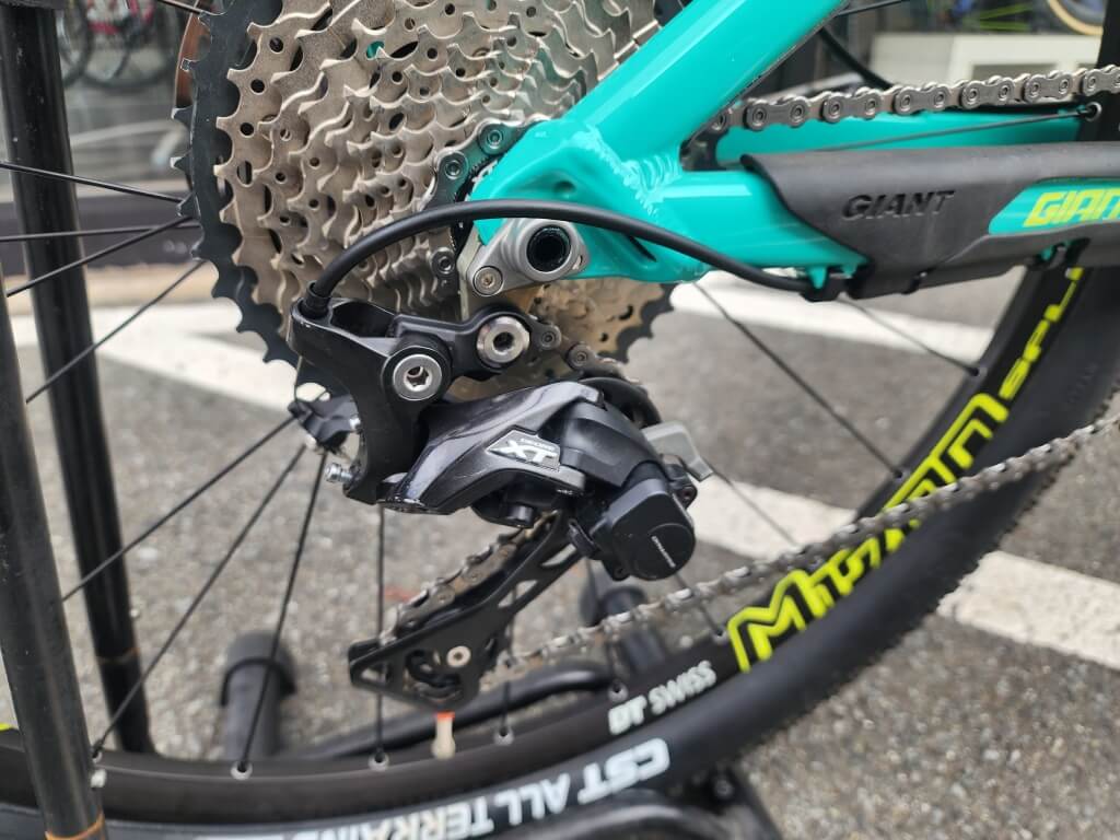 リアディレイラーも同様にクリーニングし、取り付けします。
